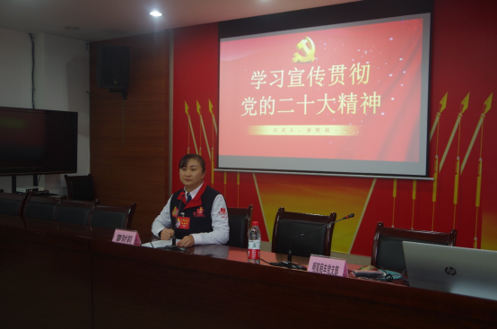 發(fā)表時(shí)間:2024-01-25 14:25作者:李嘉男來(lái)源:協(xié)會(huì) 近日,黨的二十大代表、“雷鋒的士”隊(duì)員廖財(cái)莉走進(jìn)天宮殿街道,宣講二十大精神。 會(huì)上,大家一致表示,要帶頭深入學(xué)習(xí)宣傳貫徹黨的二十大精神,堅(jiān)定聽(tīng)黨話、跟黨走,在全面建設(shè)社會(huì)主義現(xiàn)代化國(guó)家、全面推進(jìn)中華民族偉大復(fù)興的火熱實(shí)踐中團(tuán)結(jié)奮斗,貢獻(xiàn)青春力量。 宣講結(jié)合參會(huì)經(jīng)歷和工作實(shí)際,對(duì)黨的二十大精神進(jìn)行了全面宣講和深入闡釋。黨的二十大是在全黨全國(guó)各族人民邁上全面建設(shè)社會(huì)主義現(xiàn)代化國(guó)家新征程、向第二個(gè)百年奮斗目標(biāo)進(jìn)軍的關(guān)鍵時(shí)刻召開(kāi)的一次十分重要的大會(huì),取得了一系列事關(guān)新時(shí)代中國(guó)特色社會(huì)主義事業(yè)長(zhǎng)遠(yuǎn)發(fā)展的重大政治成果、理論成果、實(shí)踐成果。 宣講圍繞黨的二十大報(bào)告中的新思想、新使命、新部署、新要求,通過(guò)深入淺出的語(yǔ)言和鮮活生動(dòng)的實(shí)例,對(duì)黨的二十大精神進(jìn)行簡(jiǎn)單明了的闡述和解讀。整場(chǎng)宣講主題鮮明、立意高遠(yuǎn)、生動(dòng)形象、內(nèi)涵豐富,具有很強(qiáng)的理論性、思想性和實(shí)踐性,對(duì)黨員干部和居民群眾深刻領(lǐng)會(huì)把握黨的二十大精神具有較強(qiáng)的指導(dǎo)意義。 大家紛紛表示,此次宣講既有理論深度又有實(shí)踐溫度,具有很強(qiáng)的指導(dǎo)性,將持續(xù)深入學(xué)習(xí)黨的二十大精神,把黨的重大決策部署貫穿到工作的各方面、全過(guò)程,推動(dòng)黨的二十大精神入腦入心、見(jiàn)行見(jiàn)效。