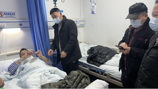 發(fā)表時間:2024-01-25 14:27作者:羅繼偉來源:高博 寒潮來襲,冰雨紛紛,重慶正式邁入寒冬。路上行人裹緊厚厚的羽絨服行色匆匆,喧囂的城市也不復(fù)往日的熱鬧,顯出幾許寂寥。 1月23日一早,高博總公司工會羅主席、黨支部聶書記、公司宋經(jīng)理,以及二隊隊長李清,驅(qū)車前往沙坪壩區(qū)重慶市公共衛(wèi)生醫(yī)療救治中心(平頂山院區(qū)),看望生病住院的駕駛員王先倫。 王先倫,男,49歲,高博客運雷鋒的士渝A95T11駕駛員(身份證號碼510223197406044634)。近期被確診直腸癌,剛剛在沙坪壩區(qū)重慶市公共衛(wèi)生醫(yī)療救治中心(平頂山院區(qū))完成手術(shù),目前處于恢復(fù)階段。 一聽說該情況,高博公司工會和黨支部高度重視,快速組織慰問小組,第一時間冒著凜冽寒風前往醫(yī)院進行慰問,把溫暖和關(guān)懷及時送到生病職工的心坎上,讓員工切實感受到高博公司大家庭的溫暖。 工會羅主席向家屬仔細詢問了生病駕駛員王先倫的病情及治療情況,并叮囑家屬仔細照顧王師傅安心養(yǎng)病,爭取早日出院。黨支部聶書記實時送上同事們的關(guān)心問候和誠摯祝福,并代表公司送上慰問金。客運公司宋經(jīng)理一再叮囑王師傅放下包袱,安心養(yǎng)病。王師傅由衷感謝大家的關(guān)愛和牽掛,并表示會好好調(diào)養(yǎng)身體,爭取早日康復(fù)。