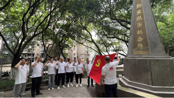 發(fā)表時(shí)間:2024-07-22 14:16作者:羅繼偉來源:高博 7月17日,高博黨支部七月黨紀(jì)學(xué)習(xí)教育活動在支部委員們的精心組織下順利開展。本次黨紀(jì)學(xué)習(xí)活動分為兩部分。第一部分:由黨支部聶書記帶隊(duì),組織黨員代表(包含紅巖先鋒隊(duì)黨支部第五黨小組的四名高博黨員王斌、曾云君、張仲紅、蔡開平)前往渝中區(qū)南區(qū)路鄒容烈士紀(jì)念碑,瞻仰先烈豐碑,緬懷先烈事跡;第二部分:全體黨員在公司小會議室開展黨紀(jì)學(xué)習(xí)。 當(dāng)天下午2點(diǎn),高博黨員代表準(zhǔn)時(shí)抵達(dá)鄒容烈士紀(jì)念碑。第五黨小組組長王斌首先給大家普及鄒容烈士的生平事跡,并號召大家學(xué)習(xí)先烈精神,堅(jiān)守黨員初心,立足本職奉獻(xiàn)社會。黨員們也紛紛表態(tài),一定不忘初心,繼續(xù)加強(qiáng)學(xué)習(xí),并將學(xué)習(xí)所得運(yùn)用到本職工作中,真正做到知行合一。