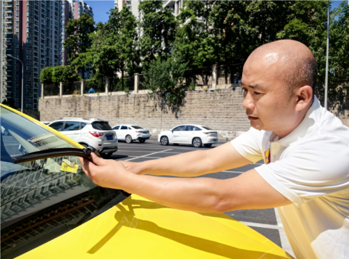 “高溫天行車,安全檢查非常重要,任何細(xì)微的疏忽都可能成為安全隱患。”每天接班前,市租公司二分公司駕駛員賈云波都會(huì)先做好檢查工作:輪胎氣壓是否正常,冷卻液是否缺少,燈光是否完好,空調(diào)使用正常等等。接著,賈云波還要擦拭門把手、座椅、打掃車內(nèi)各個(gè)角落,認(rèn)真做好出租車的清潔工作。一套流程下來,他的衣服已被汗水浸透。 “暑假期間,外地游客都來‘網(wǎng)紅’山城打卡,很多乘客不適應(yīng)重慶炎熱氣候,我在車上備了一個(gè)防暑降溫物品箱,放了清涼油、藿香正氣水等物品,可以提神醒腦,乘客有需要時(shí)還可以應(yīng)急。”二分公司駕駛員王彪說道:“出租車駕駛員作為城市的“流動(dòng)窗口”,不僅是公共交通的操作者,更是城市文化的傳播者,我們的責(zé)任就是確保每一位乘客都能安全、舒適地到達(dá)目的地。雖然夏天工作要辛苦一點(diǎn),但看到乘客們滿意的笑容,我就覺得一切付出都是值得的。”