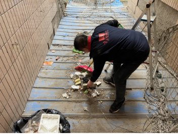 志愿者清掃雨棚老舊