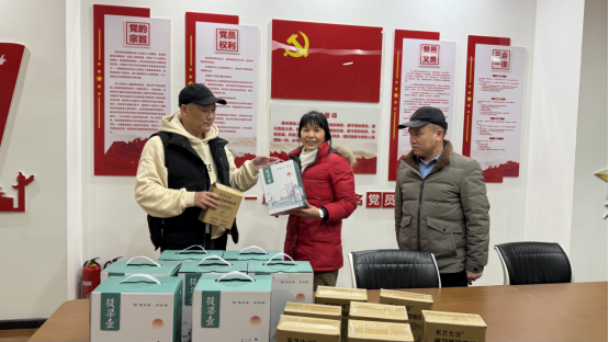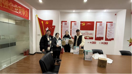 圖為工會(huì)羅主席、黨支部聶書記為公司女駕駛員送上節(jié)日的禮物