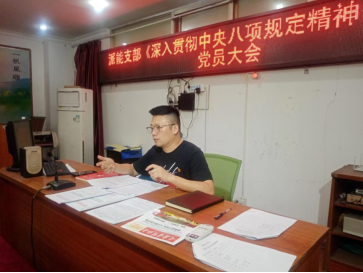 圖為支部文瑜書記正在向黨員同志們進(jìn)行中央八項(xiàng)規(guī)定學(xué)習(xí)教育的宣講