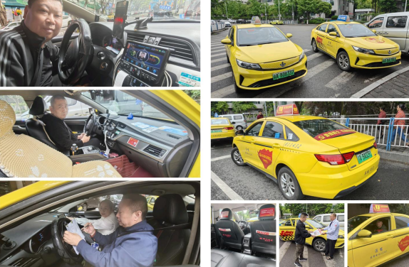 圖為派能公司管理人員同駕駛員們進行檢查互動中 2. 車容車貌規(guī)范整治 執(zhí)行“三凈一亮”標準(車身凈、內飾凈、座椅套凈、頂燈標識亮),同時對車身污漬、車內衛(wèi)生差的車輛責令限期整改、現場整改。