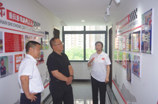 廖財(cái)莉向邱文軍介紹行業(yè)文化建設(shè)