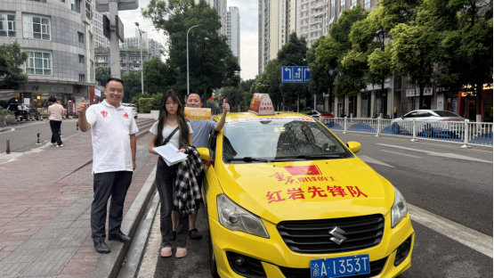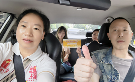 圖為6月9日雷鋒的士駕駛員王斌愛心送考現(xiàn)場(chǎng) 今年高考期間,成功參與愛心送考的還有雷鋒的士駕駛員毛開兵。6月9日一早,毛師傅在謝家灣附近巡游途中,偶然接到一名考生。了解情況后,毛師傅立即主動(dòng)表示為考生及家長(zhǎng)提供免費(fèi)送考服務(wù),在家長(zhǎng)的聲聲感謝中,毛師傅準(zhǔn)時(shí)安全的將考生送至位于楊家坪保利花半里附近的楊家坪中學(xué)考點(diǎn)。與考生告別前,毛師傅還不忘為考生加油鼓勁,并提前預(yù)祝對(duì)方考上心儀的大學(xué)。