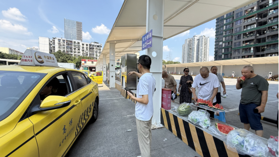 圖為高博客運(yùn)召開辦公會議落實防暑工作 會后,各部門積極協(xié)作,認(rèn)真落實。7月25日,一箱箱防暑藥品順利就位,后勤人員快速行動,及時進(jìn)行分裝。緊接著,車隊長們率先在駕駛員管理群中發(fā)布夏季送清涼活動的安排細(xì)則。按照會議部署,公司將組織慰問小組定時定點(diǎn)下隊為駕駛員們現(xiàn)場送藥,以此保障防暑藥品準(zhǔn)確發(fā)放到每一位駕駛員手中;同時,為靈活發(fā)放藥品,駕駛員們也可根據(jù)實際工作情況自行前往公司領(lǐng)取。 根據(jù)防暑工作安排,7月29日,由高博客運(yùn)黨支部聶書記帶隊,工會羅主席、客運(yùn)宋經(jīng)理、車隊長李清、副隊何元國、安監(jiān)主管張勇、安監(jiān)專員鄢曉軍組成慰問小組,前往南坪新田灣加氣站開展第一輪夏季送清涼,防暑降溫慰問活動。下午2點(diǎn),大家準(zhǔn)時抵達(dá)現(xiàn)場,根據(jù)事前分工有序行動,很快一個簡單的慰問點(diǎn)搭建起來。本次慰問活動發(fā)放物資包括防暑藥品、礦泉水,以及清熱解暑的西瓜。當(dāng)一輛輛高博的出租車緩緩駛?cè)胛繂桙c(diǎn),慰問小組的成員們第一時間熱情的送上香甜可口的西瓜。同時,將防暑藥品和礦泉水送到駕駛員手中,感謝他們的辛勤付出。安監(jiān)主管張勇時刻不忘提醒大家,夏季行車注意安全,科學(xué)補(bǔ)水防止疲勞。遇到營運(yùn)途中,征得乘客同意順道前來慰問點(diǎn)領(lǐng)取防暑物資的,慰問小組的成員們還暖心的為每位乘客送上西瓜解暑,感謝他們對駕駛員工作的支持與理解。看見兄弟單位的駕駛員們羨慕的表情,聶書記和宋經(jīng)理也熱忱招呼大家前來免費(fèi)品嘗西瓜。