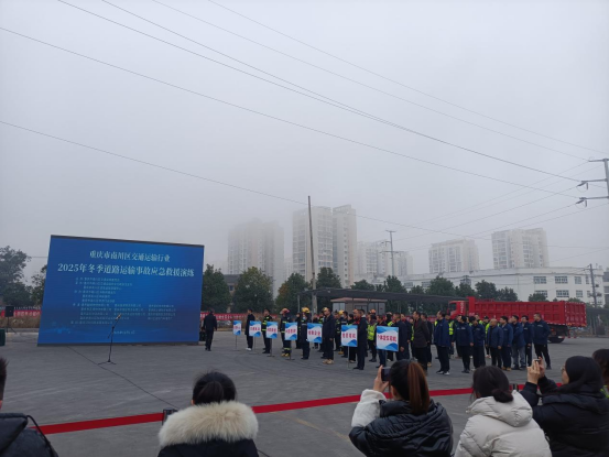 圖為:南川區(qū)舉行的道路運輸企業(yè)2025年冬季道路運輸事故應(yīng)急救援演練現(xiàn)場