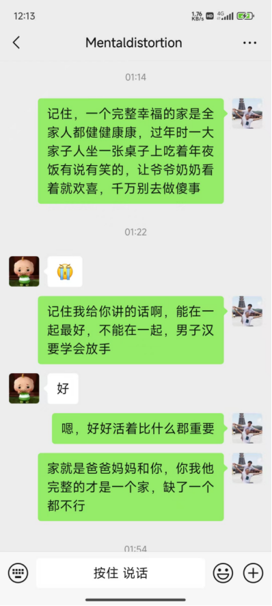 圖為:重慶“雷鋒的士·紅巖先鋒隊(duì)”公運(yùn)黨小組黨員楊健微信勸導(dǎo)輕生青年