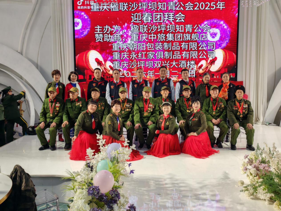 圖為:重慶楹聯(lián)沙坪壩知青工會(huì)2025年迎春團(tuán)拜會(huì)抗美援朝老兵與雷鋒的士演唱合影
