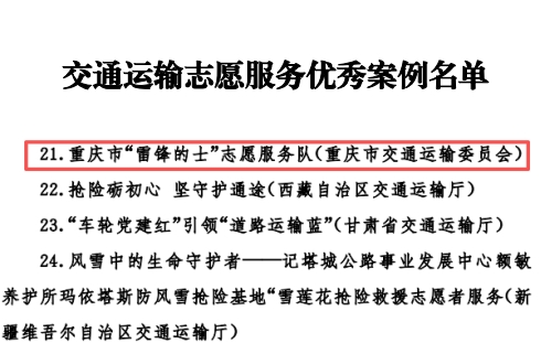 近日,交通運(yùn)輸部辦公廳公布全國交通運(yùn)輸志愿服務(wù)優(yōu)秀案例名單,由重慶市交通運(yùn)輸委推薦報送的重慶市“雷鋒的士”志愿服務(wù)隊案例成功入選,成為全國40個優(yōu)秀案例之一。與此同時,由重慶市出租汽車暨汽車租賃協(xié)會報送的“打造‘雷鋒的士·紅巖先鋒隊’帶動行業(yè)服務(wù)水平整體提升”案例,獲評重慶市委社會工作部2024—2025年度“渝會有為”創(chuàng)新引領(lǐng)優(yōu)秀案例。雙重榮譽(yù)加身,彰顯了重慶“雷鋒的士”品牌在志愿服務(wù)領(lǐng)域的突出成效與廣泛影響力,為全國交通運(yùn)輸行業(yè)志愿服務(wù)樹立了標(biāo)桿。