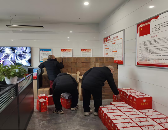 公司領(lǐng)導(dǎo)為駕駛員發(fā)放禮品