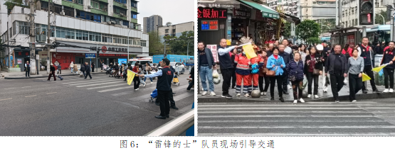 雷鋒隊(duì)員手持“文明交通”小旗,在路口、人行橫道等交通重點(diǎn)位置開展文明交通現(xiàn)場引導(dǎo),交巡警與交通行政執(zhí)法隊(duì)員全程現(xiàn)場指導(dǎo),對行人橫穿馬路、非機(jī)動車逆行等不文明交通行為進(jìn)行柔性勸導(dǎo)與及時糾正,引導(dǎo)市民文明出行。