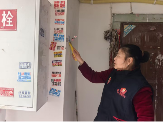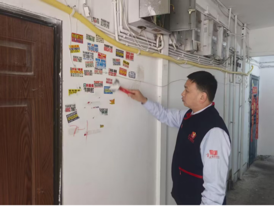 活動現(xiàn)場,隊員們身著雷鋒的士馬甲,手持鏟刀、噴壺、除膠劑等工具,深入轄區(qū)居民樓道、沿街墻面,對各類非法小廣告展開“地毯式”清理 。面對層層粘貼、膠印頑固的“牛皮癬”,大家分工協(xié)作:先噴水軟化、再細(xì)致鏟除、最后擦拭潔凈。平日里穿梭在城市街巷的出租車司機(jī),化身環(huán)境“守護(hù)者”,不怕臟、不怕累,用汗水擦亮城市文明底色。