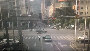 這時(shí),馬路對面駛來一輛出租車,因紅燈亮起停在了斑馬線前。見老人被困,出租車師傅祁美華直接下了車,一陣小跑,穿過層層車流,來到老人身邊,小心翼翼將其推至馬路對面。做完這一切,祁美華默默駕車離開,殊不知,路口有三個(gè)攝像頭恰好全都對著他。